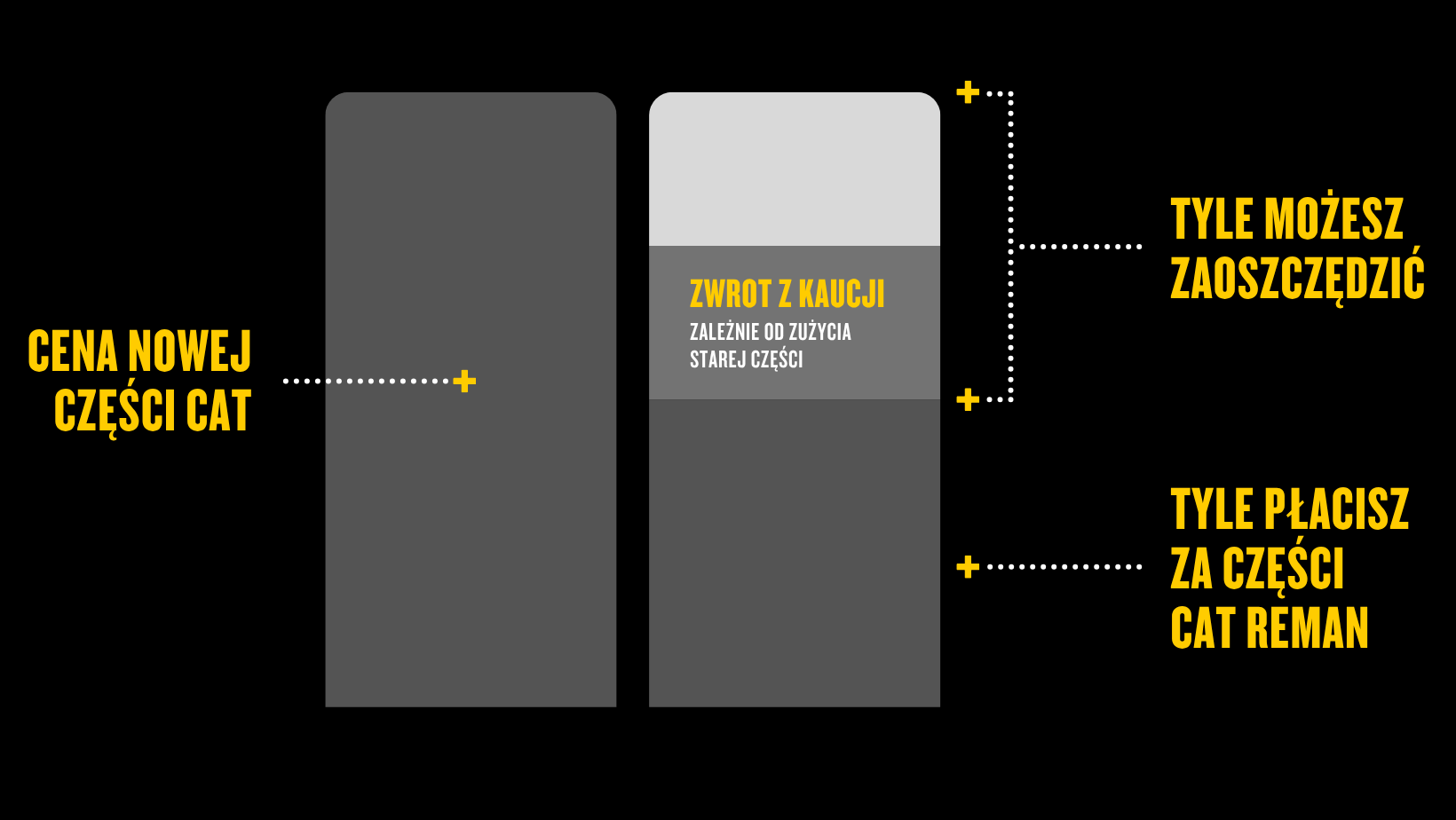 Program regenerowanych części CAT oparty jest na systemie wymiany starych części na części regenerowane, za niższą cenę, dzięki kaucji za zwrot używanej części. Części typu Reman to kolejny sposób na obniżenie kosztów utrzymania Twojej maszyny.